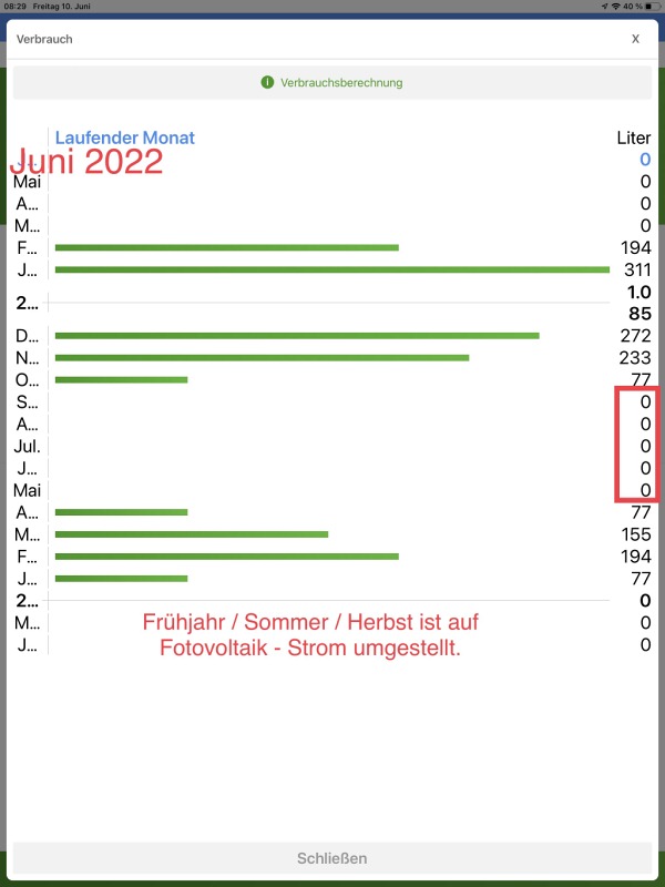 Heizölverbrauch 5 bis 7 Monate im Jahr total auf