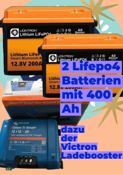 Unsere beiden Aufbaubatterien mit insgesamt 300 Ah werden nun ersetzt mit Lifepo4, 400 Ah. Diese Akkus kann man nicht nur zu 50 % entladen, sondern es stehen fast 100 % zur Verfügung.