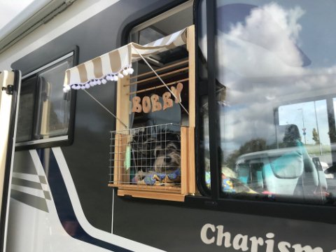 Ja, Bobby hat an seinem Lieblingsplatz einen eigenen Slide-Out. Während der Fahrt muss er allerdings auf die Sonnenmarkise verzichten.