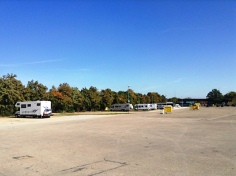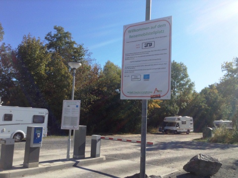 Der Stellplatz am Rande des zentralen Parkplatzes