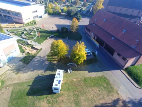 geplanten Stellplatz neben Schule, Kirche, Festplatz