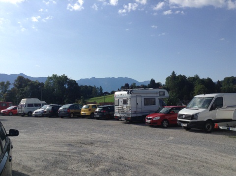 einen großzügig angelegten Stellplatz für Wohnmobile. Die