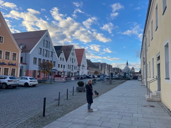 Schöner Marktplatz, 3 Gehminuten vom Stellplatz entfernt. Gasthäuser und eine Metzgerei mit warmer Theke. Köstliche Gerichte