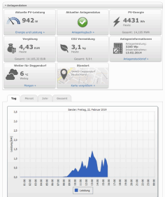 Fotovoltaikanlage an. Die Tagesausbeute liegt bei