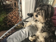 Bobby genießt sie im Freien auf der Terrasse bei