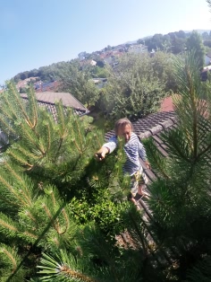 bemerkten wir, dass Elstern unsere mächtige Kiefer