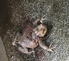 Erdkröte im hinteren Teich. Sie verlässt gerade den