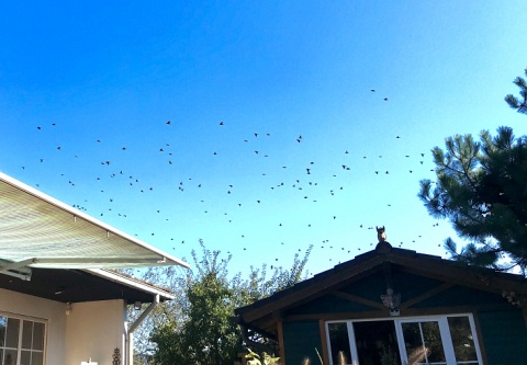 Oktober da. Die Stare bereiten sich auf den Flug ins