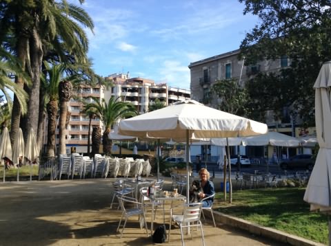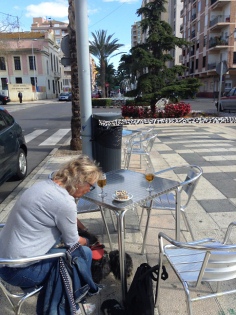 Wieder im Straßencafe im Park. Zum Glück ist es morgens um