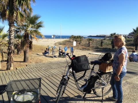 Nachmittags wandern wir mit Liegestuhl zum Meer.