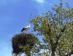 pur. Direkt über unserem Mobil sorgt ein Storchenpaar für